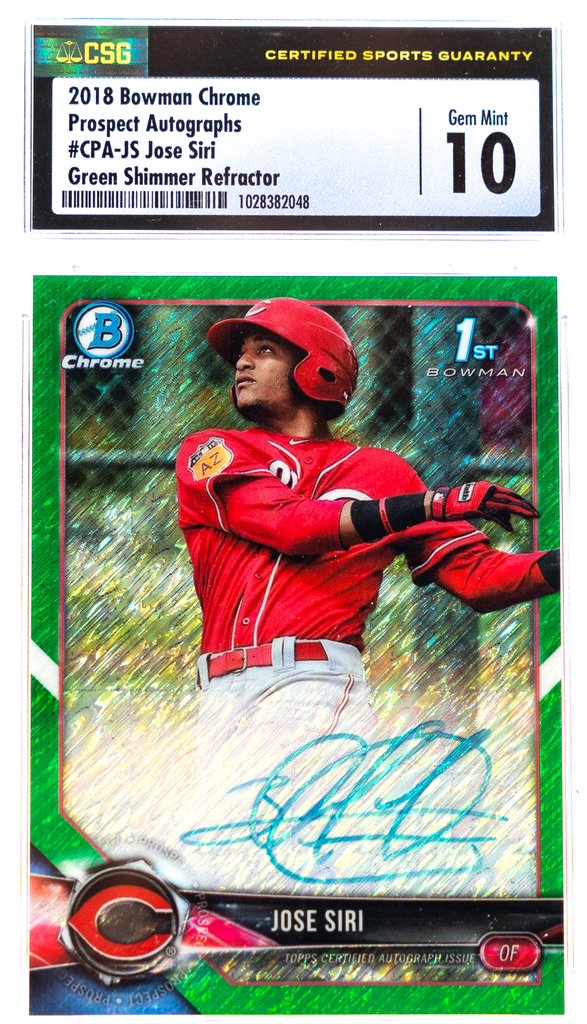 2018 Bowman Chrome – Jose Siri CPA-JS – Green Shimmer /99 – CSG 10 / 10