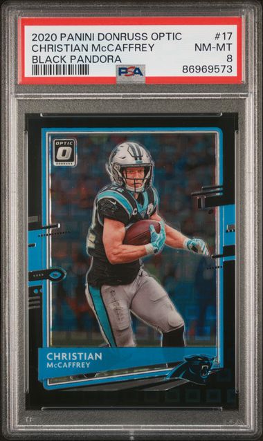 2020 Panini Donruss Optic – Christian McCaffrey 17 – Black Pandora /25 – PSA 8