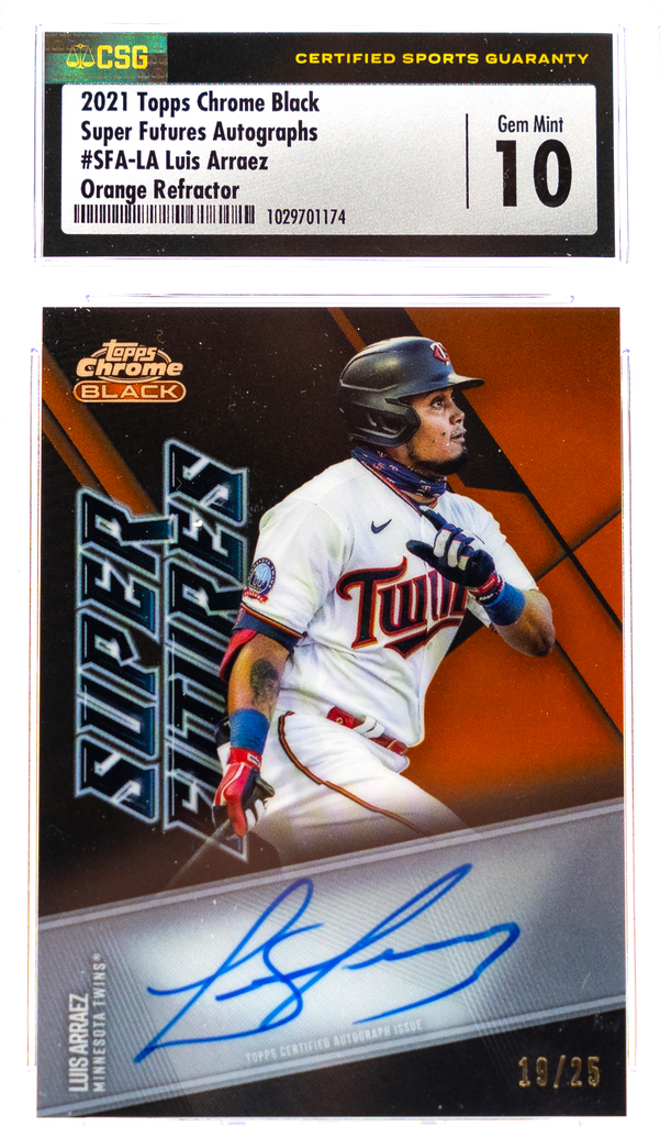 2021 Topps Chrome Black – Luis Arraez SFA-LA – Orange Refractor /25 – CSG CGC 10 / 10