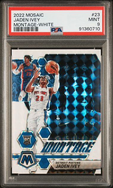 2022 Panini Mosaic – Jaden Ivey 23 – Montage White /25 – PSA Mint 9