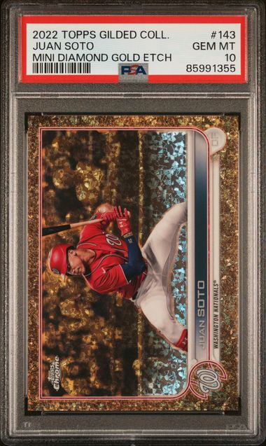 2022 Topps Gilded – Juan Soto 143 – Mini Diamond Gold Etch /50 – PSA