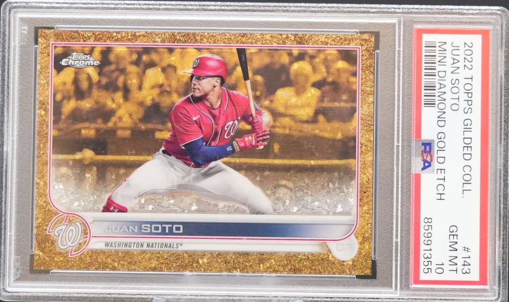 2023 Topps Gilded – Juan Soto 143 – Mini Diamond Gold Etch /50 – PSA Gem Mint 10