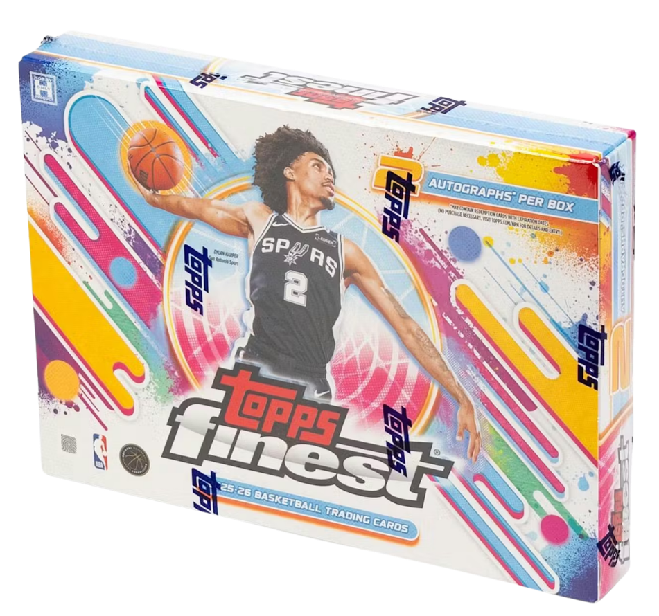 Topps Finest Basketball returns with that unmistakable 90s style, delivering a vibrant mix of iconic design, modern edge and premium cards. Built around a deep 300-card Base Set, Finest showcases today’s stars, legends, and emerging rookies across Common, Uncommon, and Rare tiers, each layered with a wide array of colorful and dynamic parallels.
