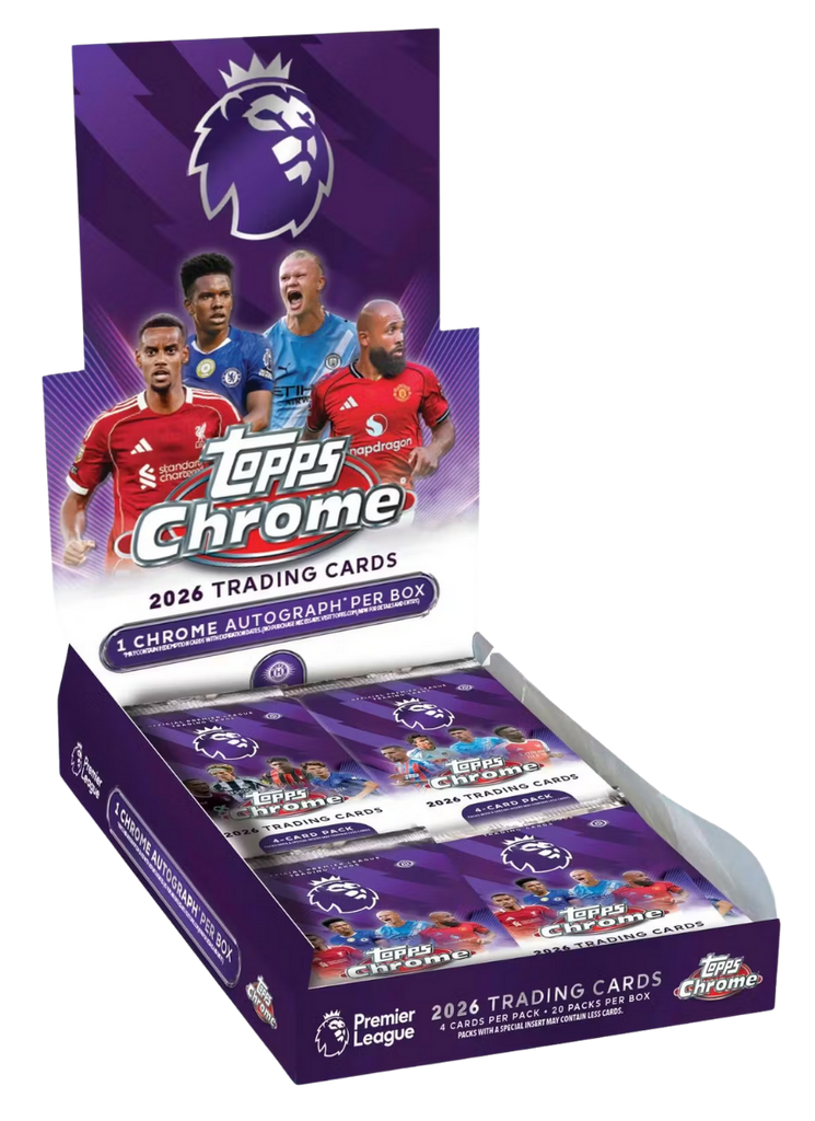Each Box contains 1 Autograph and 4 Exclusive Prism Parallels, on average! Topps Chrome Premier League 2026 brings with it a highly anticipated return, showcasing the Premier League at its Chrome b…
