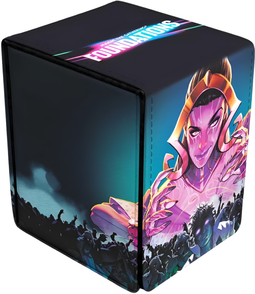 The Alcove Flip Deck Box for Magic: The Gathering features a vibrant, full-color leatherette finish, strong magnetic closure, and dual thumb notches for easy access to your deck. Store and protect up to 100 standard size trading cards double-sleeved in Ultra PRO Deck Protector sleeves. Lid can be detached from either side of the box for easy access to your deck.• Officially licensed Alcove Flip Deck Box for Magic: The Gathering Foundations• Features exclusive artwork• Strong magnetic closure featuring multiple magnets to hold the lid securely shut• Holds up to 100 standard size cards double-sleeved• Lid unfolds from either side to reveal dual thumb notches for easy access to your deck